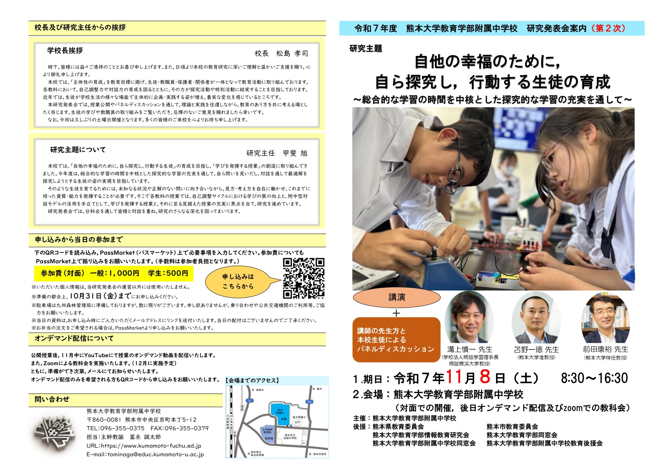 詳細はR7熊大附属中研究発表会2次案内をご覧ください。(クリックすると詳細をご覧いただけます。)