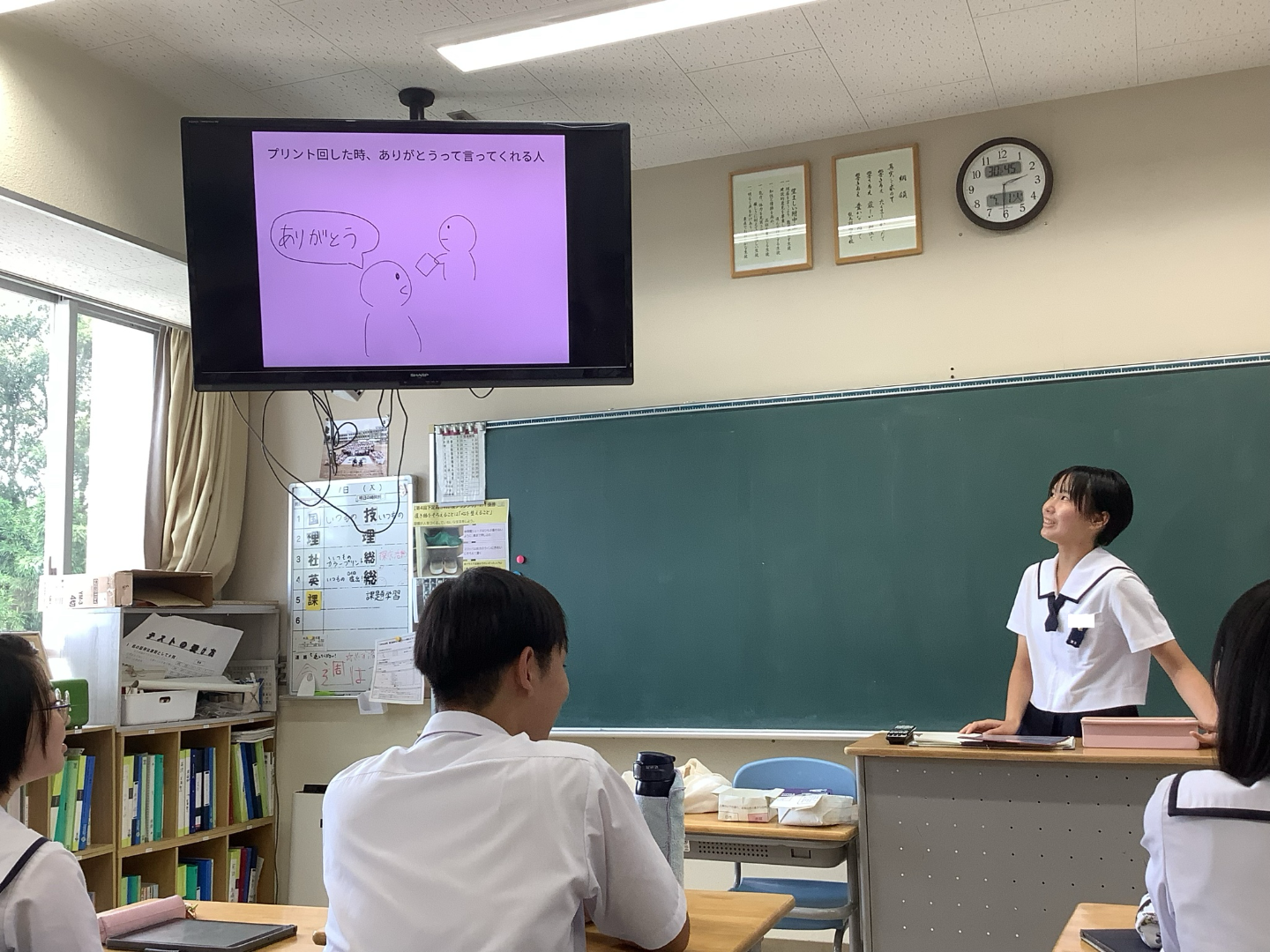 尊敬する人の具体的な例として、「プリントを回したときに「ありがとう」と言ってくれる人」が挙げられました。