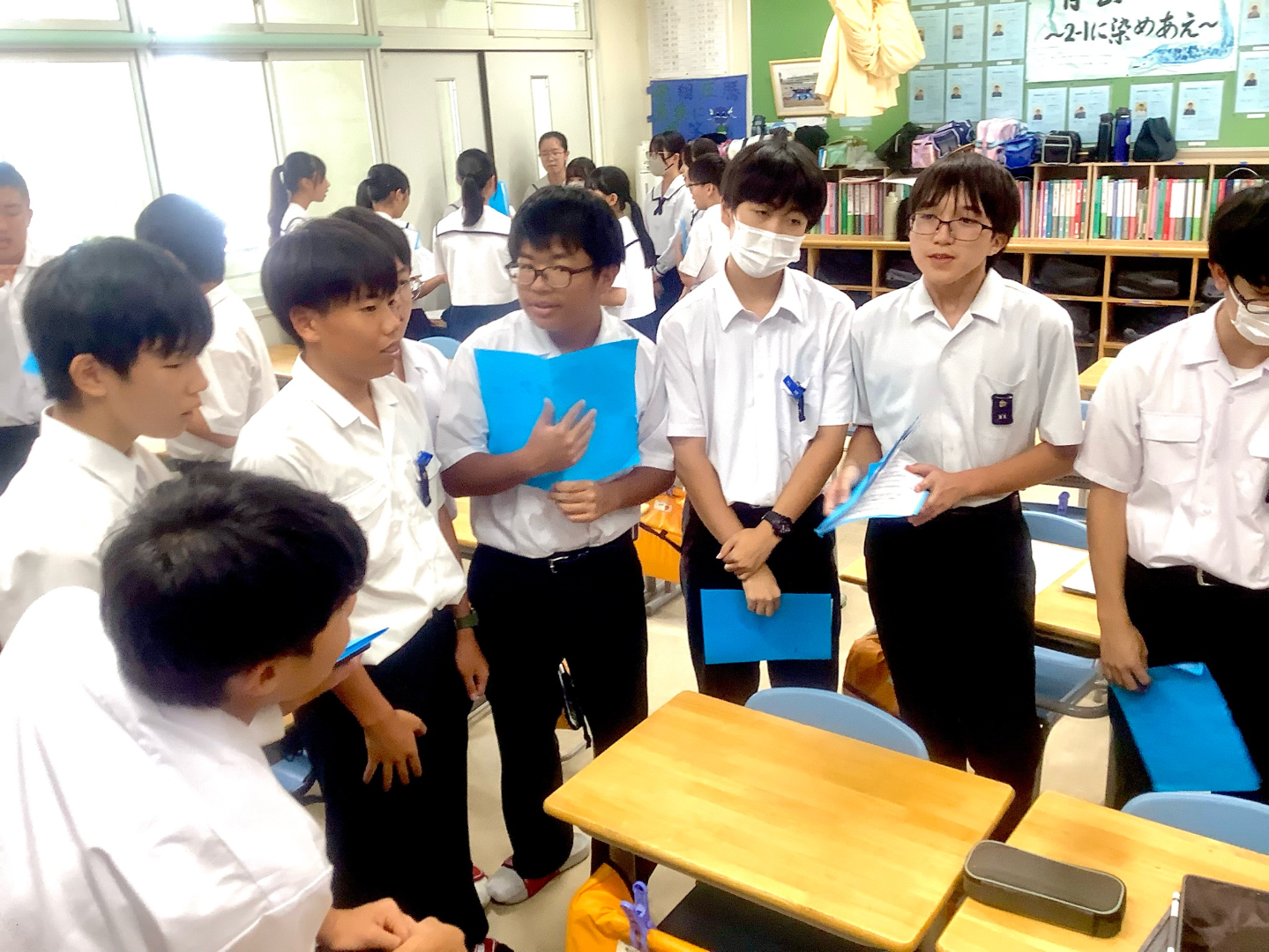 みんな楽しみにしている合唱コンクールまで残りわずかになりました。クラスのみんな朝、昼、夕、一生懸命頑張っています。特に指揮者のT君やピアニストのNさんとYさん、パートリーダーの人たちは優勝を目指して一生懸命にみんなを引っ張ってくれます。2年生の課題曲は「山のいぶき」、2年1組の自由曲は「希望という名の花を」です。どちらも難易度が高く歌うのが難しい曲ですが、賞を取れるよう、そして今度こそ青龍団が勝てるように練習から全力で頑張ります!応援よ炉しくお願いします。