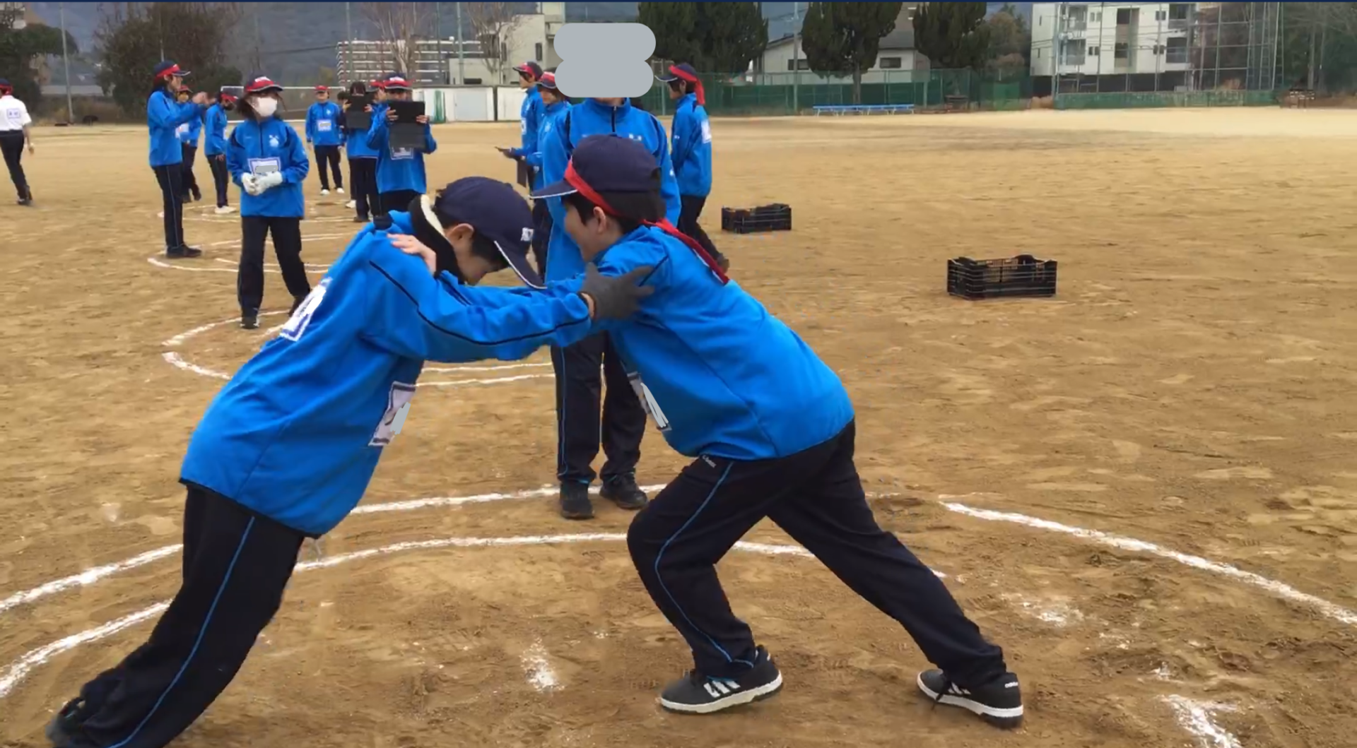相撲は相撲でも、今回行ったのはシンプルに押し合うのではなく、お互いの肩に手を置いて押し合うものです。一瞬で勝負がつくものもあれば、なかなか決着がつかない試合もありました。