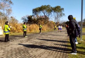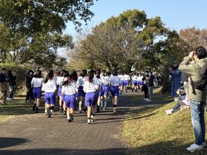 コースの各所では,先生方,PTA執行部,マラソン大会係の皆さまをはじめ,多くの保護者の方々が応援に駆けつけてくださり,安全を確認しながら,温かい声援と拍手を送っていました。