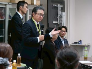 セミナー後には座談会も行われました。株式会社モチベーションアカデミア前代表取締役社長で,現在は株式会社リンク・インタラック代表取締役社長の柿木秀雄様をはじめ,佐々木様,安藤様,校長先生,教頭先生を囲み,和やかな雰囲気で意見交換が行われました。